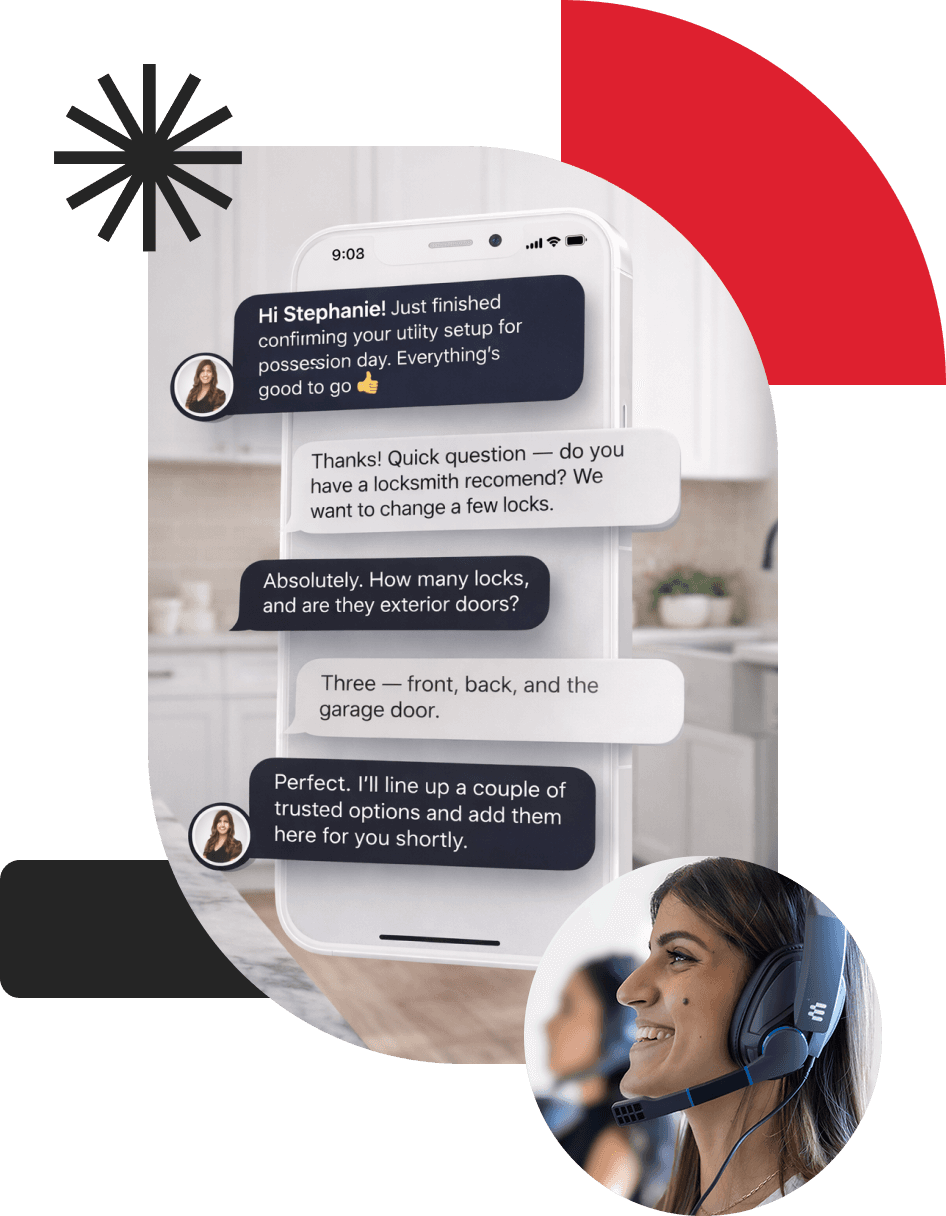 Real people handle move logistics including utilities, bins, mail, and movers. They answer client questions, coordinate details, and speak 12 languages. Support doesn't end at closing—it continues long after. This saves you approximately 4 hours per deal while saving your clients 40 hours and $1,200.